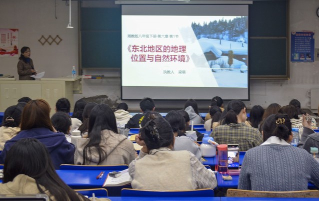 讲座中,项老师首先详细解读了《义务教育课程标准》、初中地理课程的性质、初中地理课程的“五大”核心理念与“四大”核心素养,并指出新一代教师应更新教育观念,提高教学质量,转变教与学的方式,构建合作的师生关系。随后,从学讲计划的理念、教学环节、“五步”“五学”教学行为、对教学成果的评价要点以及徐州市“三新四”教学行动五个方面,系统地剖析了如何成长为合格的地理教师。为了使同学们对课堂教学过程有更深入的了解,项老师播放了优秀教学视频并展示了优秀PPT课件,生动直观地告诉同学们应该如何设计课堂,让学生更愿意说、更愿意听。最后,项老师对同学们进行了教师基本功大赛的指导,并深情寄语同学们“根本固者,华实必茂;源流深者,光澜必章。”在同学们热烈的掌声中,讲座落下帷幕。