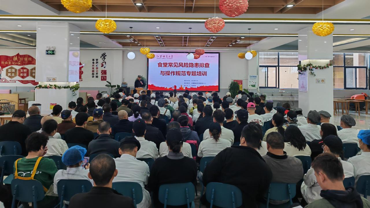 为进一步学习贯彻党的二十届三中全会精神和习近平总书记关于食品安全的重要论述,扎实做好食品安全“两个责任”落实,助力我校饮食从业人员专业精进,持续提升服务品质,饮食服务中心制定了2024年秋季三期专业能力提升培训计划。10月25日下午,第一期“食堂常见风险隐患排查与操作规范”专题培训在泉山七食堂顺利开展,中心各区域分管食品安全管理人员、各食堂网点负责人、食品安全员及各班组组长150余人参加了培训。