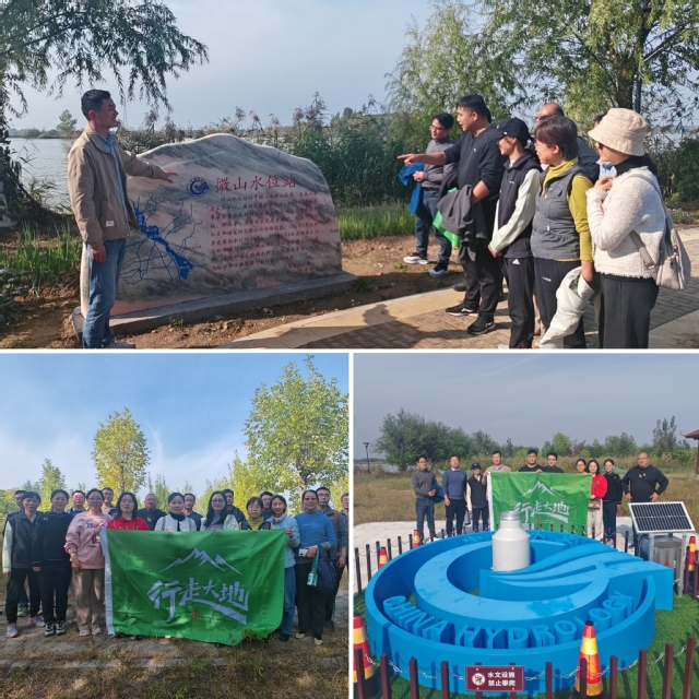 地测学院教师党员结合专业特点,在微山湖开展生态环境保护调研工作。第一党支部书记李建国表示,微山湖是结构完整、保存较好的内陆大型淡水草型湖泊,还是山东省重要的“生态宝库”,被称为“黄金水道”的京杭大运河纵贯其中。随后,他就微山湖的水资源调蓄、水质状况、流域特点、生态价值和旅游价值等方面,对微山湖独特的水文特征和丰富的生态资源进行解读。