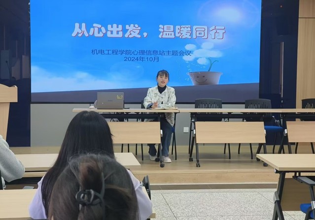 10月30日,机电工程学院心理信息站召开“从心出发 温暖同行”主题会议暨10月份心理例会。机电工程学院心理辅导员赵宁老师出席会议,院心理信息站站长韦鑫怡及全体心理委员参加会议。