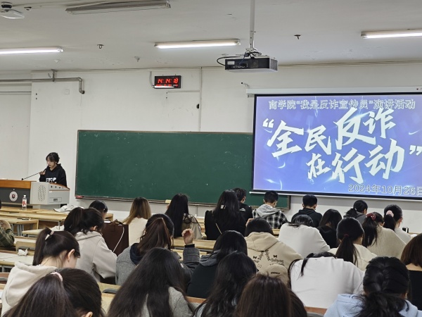 为提升大学生群体的防诈意识与警惕性,商学院于10月26日下午2:00在泉山校区西教14号楼北117教室举办了“我是防诈宣传员”演讲活动。