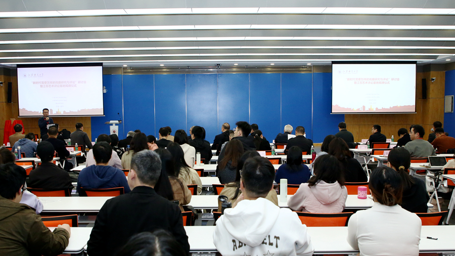10月27日,江苏省“新时代需要怎样的戏曲研究与评论”研讨会暨江苏艺术评论基地揭牌仪式在我校举办。江苏省文化和旅游厅原一级巡视员、江苏省艺术评论学会会长方标军,我校党委书记方忠,江苏宣和文旅集团董事长、江苏艺术评论学会副秘书长周书戎出席会议。来自南京大学、华东师范大学、苏州大学、南京师范大学、江苏师范大学等高校的近三十名专家学者共同与会。会议由江苏省艺术评论学会副会长吕靖波主持。