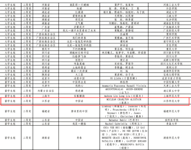 近日,中华经典诵写讲大赛执委会公布了第六届中华经典诵写讲大赛国赛获奖名单。我校留学生MCCLEAN CHARLTON ALISTAIR(莱恩)的作品《中国话》荣获“诵读中国”经典诵读大赛留学生组二等奖,这是我校继第五届获得国赛二等奖后,蝉联国赛奖项。