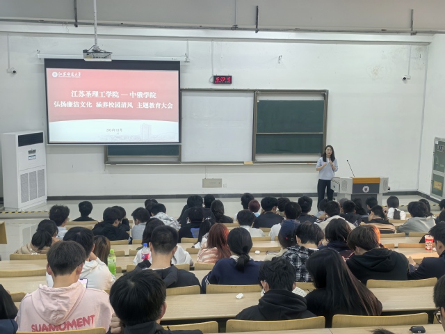 为进一步加强校园廉洁文化建设,提高学生廉洁素养,教育引导2024级新生系紧、系好“人生第一粒扣子”,11月1日,江苏圣理工学院-中俄学院在西教14号楼阶201开展新生入学教育之廉洁教育——“弘扬廉洁文化,涵养校园清风”主题教育大会。大会由学院党委副书记文雯主讲,2024级年级辅导员、班主任及2024级新生参加。
