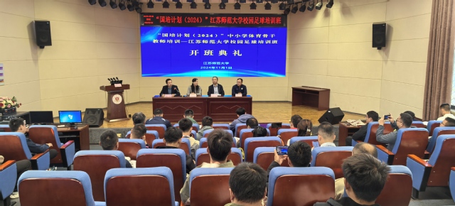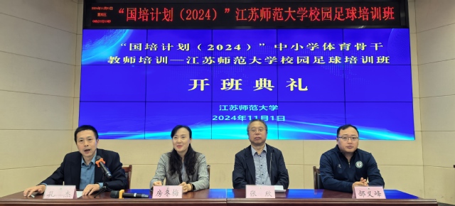 11月1日上午,江苏师范大学承办的教育部“国培计划(2024)”中小学音乐体育美术劳动课程骨干教师培训——校园足球项目培训班开班典礼在我校举行。江苏师范大学教育科学学院(教师教育学院)张欣书记,体育学院房冬梅院长、部义峰副院长,以及来自全国各地的50名中小学骨干教师参加了开班典礼。开班仪式由教育科学学院(教师教育学院)孔杰老师主持。