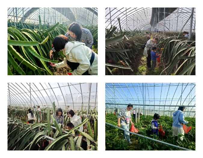 第二站,老师们来到贾汪区汴塘镇红心火龙果园。在村民的带领下,老师们走进火龙果棚,亲手采摘火龙果,亲身体验丰收的劳作,感受人与自然融洽的美好时光。