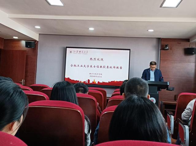 2024年11月5日下午,国家级教学名师暨首届国家万人计划教学名师、合肥工业大学朱士信教授应邀到数学与统计学院交流指导专业建设工作,并为学院教师做了题为“一流课程建设的探索与实践”的报告。本次活动由张超院长主持,数学与统计学院部分教学一线专任教师参加。