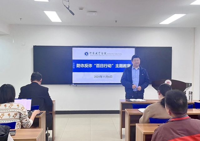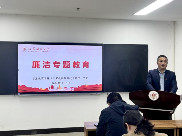 11月6日下午,智慧教育学院(计算机科学与技术学院)召开全体教职工大会暨廉洁教育专题会议,通报近期重点工作,部署具体工作安排,并对全体教职工进行防诈反诈提醒。学院全体教职工参加会议,会议由学院党委书记周显洋主持。