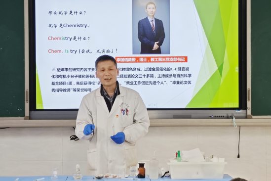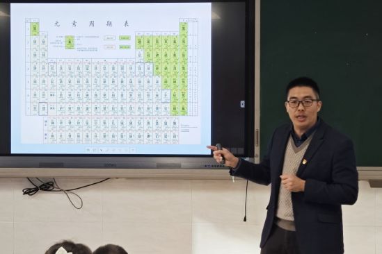 随后,姜波教授以“化学元素的奇妙世界”为题,为同学们揭开了化学世界的神秘面纱。他生动地讲解,结合科普短片播放,让同学们对化学元素有了初步的认识和理解,并将化学知识与日常生活紧密相连,激发了同学们对化学的兴趣和好奇心。