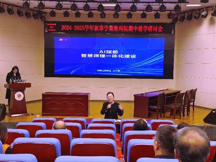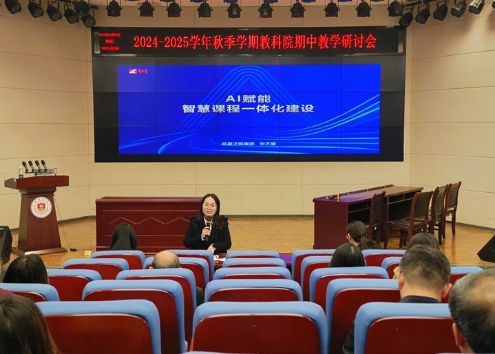 第三阶段,学院邀请了超星泛雅集团的张艺馨老师为全体教师开展了一场题为“AI赋能智慧课程一体化建设”的精彩讲座。讲座深刻洞察了教育科技的前沿趋势,并通过一系列生动的案例,展示了AI在智慧课程一体化建设中的具体应用。从智能教学系统的个性化推荐,到虚拟实验室的沉浸式学习体验;从智能评估系统的精准反馈,到大数据支持下的学情分析,AI技术以其独特的优势,为教师描绘了一幅智慧课程一体化建设的宏伟蓝图。