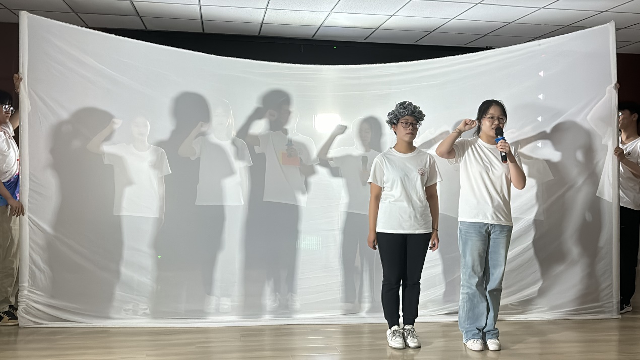 遵循“艺术育人,德育润心”的理念,宣讲团成员发挥自身特长,策划了“梦回西柏坡,青春绽芳华”文艺汇演,巧妙地将西柏坡精神融入丰富多彩的艺术活动中,在沉浸式艺术体验中拓展理论高度和实践深度。宣讲团紧扣红色教育主题,采用舞蹈、理论宣讲、影子剧、演讲、朗诵多种演绎方式带领学生们重温党的峥嵘岁月,在丰富学生精神文化生活的同时,营造了浓厚的红色文化氛围,实现“红色教育+艺术培育”双成长,让西柏坡精神浸润心田。宣讲团成员引导学生共同上台演绎,学生们踊跃参与、热情高涨,由“被动者”变成“参与者”,在双向互动中感受红色文化的深厚底蕴,在潜移默化中受到爱国主义的熏陶,增进了对党和国家的深厚感情。