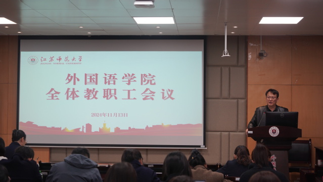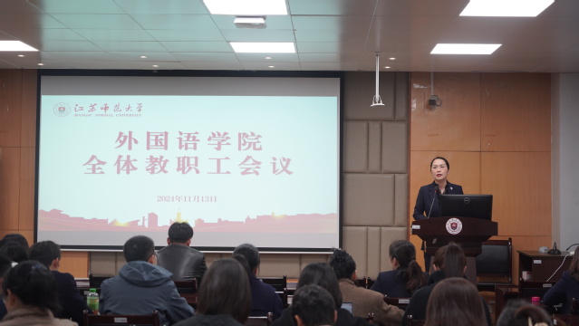 11月13日下午,外国语学院召开全体教职工大会,会议由学院党委书记庄园主持。