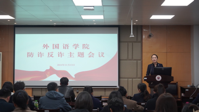 11月13日下午,外国语学院党委书记庄园主持召开防诈反诈“百日行动”主题会议,学院全体教职工参加会议,集中观看大学生反诈宣传视频,进行防诈反诈相关知识学习。