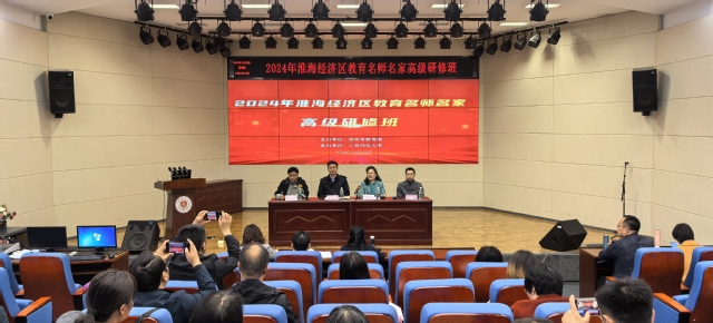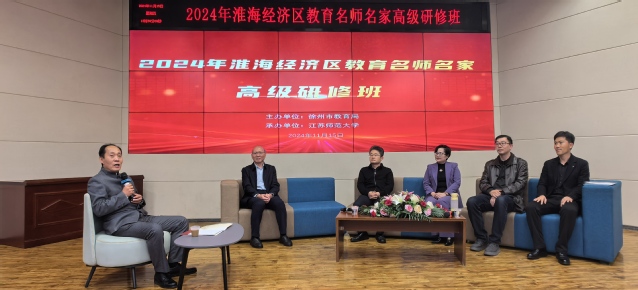 为学习贯彻全国教育大会精神,大力弘扬教育家精神,促进教育名师名家持续发展、提升新时代基础教育质量、打造区域教育高地,11月15日上午,2024年淮海经济区教育名师名家高级研修班在我校举办。江苏师范大学党委副书记蔡国春教授、徐州市教育局刘桂云副局长、江苏师范大学教育科学学院(教师教育学院)孔杰老师参加了开班仪式。开班仪式由徐州市教育局教师工作处李进强处长主持。