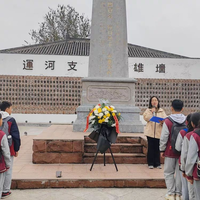 在卧龙泉生态园的运河支队纪念碑前,教官真切地介绍了运河支队四百名抗日烈士四百名抗日烈士的事迹。在中国共产党的领导下,中国人民经历了无数的苦难和挫折,但最终取得了胜利。在这些峥嵘岁月里,有无数的英雄人物和革命先烈为了民族独立、人民幸福而奋斗终身。他们的故事和精神是我们应该学习和传承的。