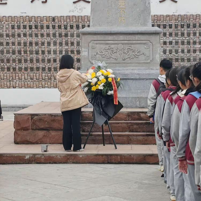 全体瞻仰了革命烈士纪念碑并高唱中华人民共和国国歌,随后列队肃立、默哀,给烈士敬献鲜花,向革命烈士表达敬意、寄托哀思。忠魂陨落,浩气长存。师大附实校初中部副校长张娇为鲜花整理系带,并发表讲话。张校长呼吁同学们要珍惜现在来之不易的幸福生活,努力学习,为祖国的繁荣昌盛贡献自己的力量。