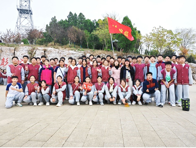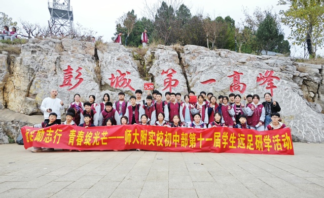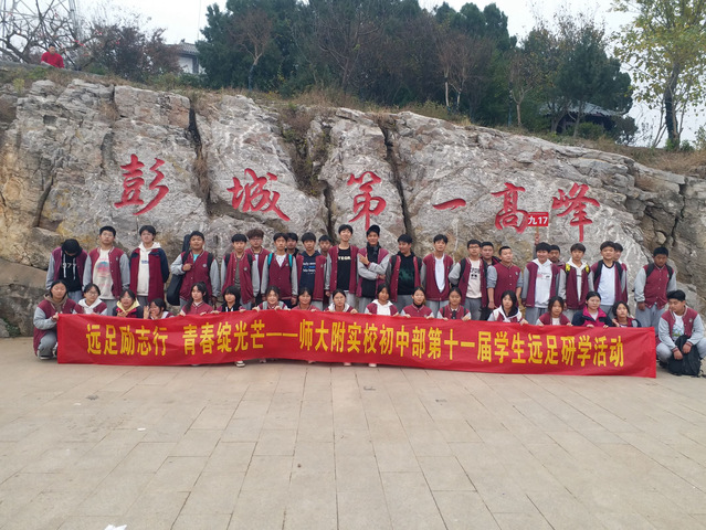 宣誓完毕后,同学们纷纷跟着老师的脚步到刻有“彭城第一高峰”的巨石前合影留念。留下青春最美好的瞬间。