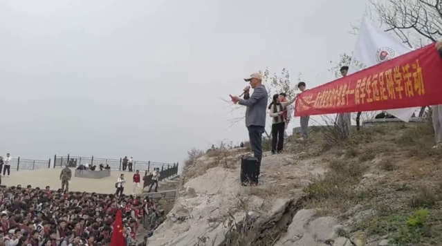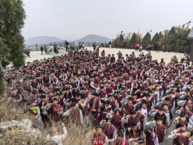 山不见我,我自去见山。九年级全体师生成功登顶后,汇聚于“彭城第一高峰”前,进行庄严的宣誓活动。许大雨副校长表达了对全体九年级学生的美好期盼,要勇于攀登属于自己人生的巅峰。将全体学生们的情绪推向高潮。九年级学子们斗志昂扬的呐喊出自己的梦想与决心。
