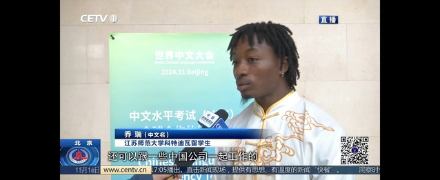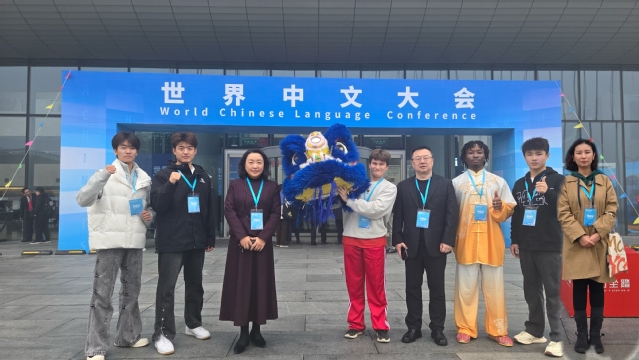 11月15日,世界中文大会专项会议—中文水平考试(HSK)全球合作伙伴大会成功举办。世界各地的中文水平考试考点、孔子学院与孔子课堂、国内外高校、国际教育机构以及专家学者等千余人汇聚一堂,共商共议、共享经验、共话未来。我院师生代表参加此次活动。会议上,我校国际学生和体育学院中国学生携手展示了中国传统艺术——舞狮表演,体现了中外文化融合和我校高水平的培养质量,赢得了现场观众热烈掌声与喝彩。随后,我校美国籍学生TRABUCCO BRYCE和科特迪瓦籍学生ZOAN BI SOKO GHISLAIN接受了中国教育电视台的采访。