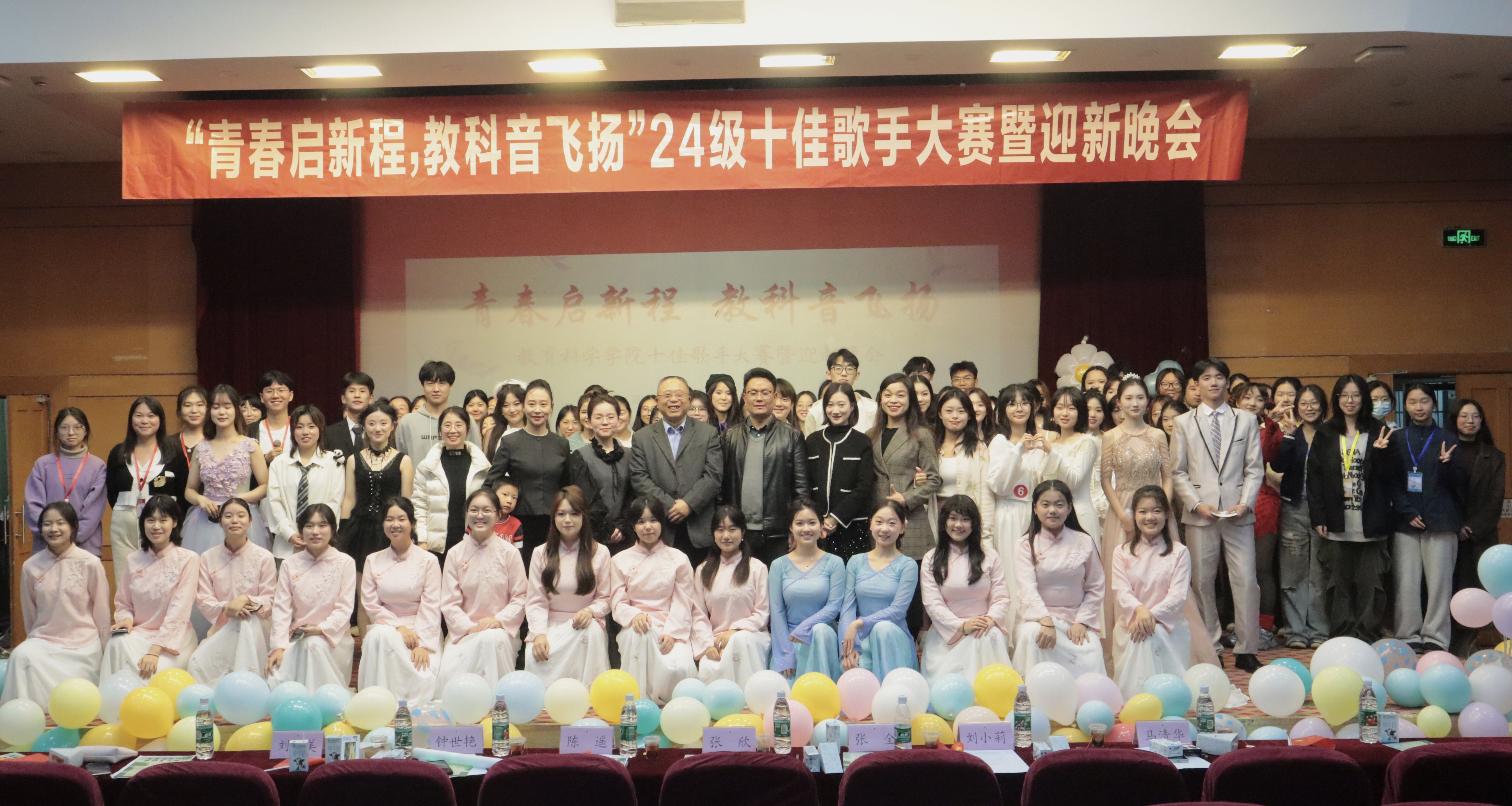 为展现青春风采,激扬青春力量,11月14日晚,教育科学学院(教师教育学院)在敬文报告厅举办“青春启新程,教科音飞扬”2024级迎新晚会暨十佳歌手大赛决赛。学院党委书记张欣、副书记陈遥、教师代表、辅导员及班主任莅临现场,2024级新生及其他年级学生代表参加活动。