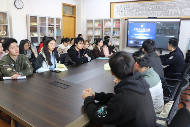 为进一步提高我院学生的反诈防骗意识,有效预防和减少校园电信网络诈骗案件的发生,全力保障学生财产安全,经校保卫处组织,历史文化与旅游学院于11月20日下午,邀请铜山派出所民警为学生们开展反诈防骗专题宣讲会。学院党委副书记杜登、本科生辅导员赵宇老师、研究生辅导员于雯静老师、全体研究生骨干和本科生骨干参加了此次宣讲会。