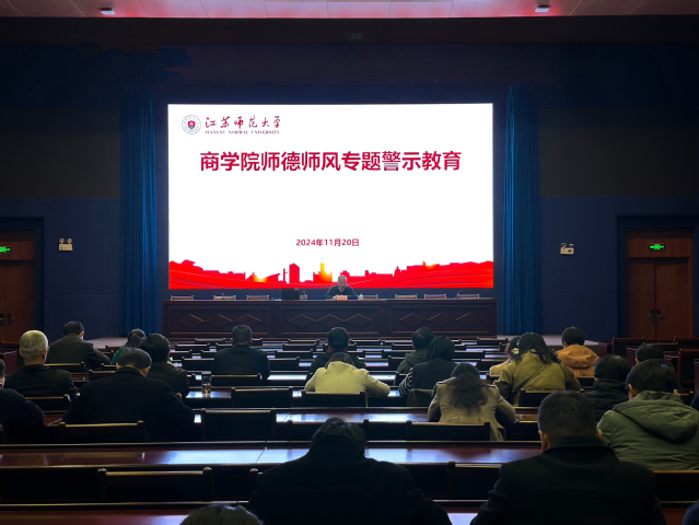 为深入贯彻落实习近平总书记在全国教育大会上的重要讲话精神,推进师德师风建设,11月20日下午,商学院在分析测试中心100D开展师德师风专题警示教育,学院全体教职工参加,会议由院长罗栋梁主持。