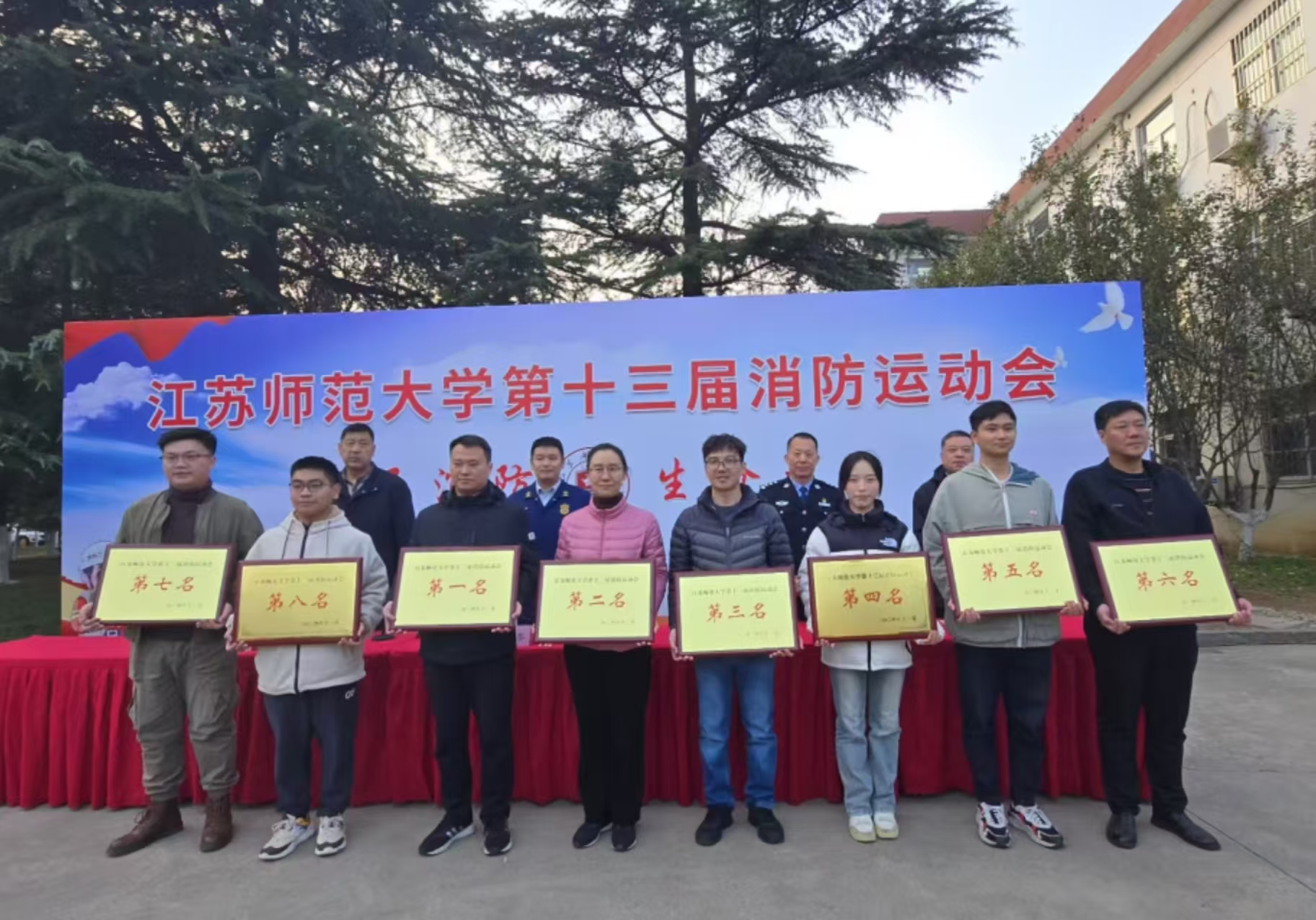 为切实提升广大师生的消防安全素质和自救互救能力,11月20日下午,江苏师范大学在泉山校区敬文图书馆北侧足球场举办了第十三届消防运动会。国际学院派出的代表队团结一致,配合默契,经过激烈角逐,荣获第三名。这是我院参加校消防运动会以来取得的最佳成绩。