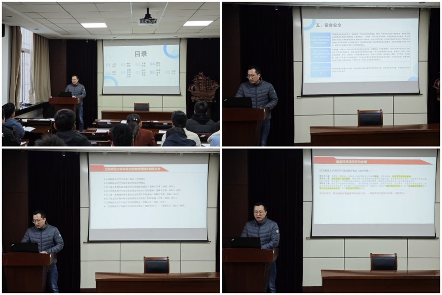 赵玉璋副书记首先通报了近期学生工作动态,传达上级工作指示,带领全体人员全面梳理了校园安全知识,重点讲解了宿舍安全的重要性和相关纪律要求。随后,详细布置了学生安全稳定具体工作,要求辅导员、班主任深入学生开展调研摸排,了解学生身心状况。他指出,各班级要提高政治站位,树牢底线思维,立即行动,对本班学生的心理状态、矛盾纠纷、安全隐患、突发情况等方面进行重点关注和全面排查;要做好应急预案,特别是要有敏锐判断意识,及时将隐患发现在细微,将风险化解整治在毫末;要进一步建立完善工作台账,实行“一生一档”“一生一策”,积极协调资源进行全方位、全周期跟踪帮扶,做到闭环管理;要充分发挥好学生骨干和网格员作用,确保日常工作开展顺利、扎实有效。此外,会议还就如何加强心理健康教育、反诈防骗、就业升学指导等工作进行了布置。