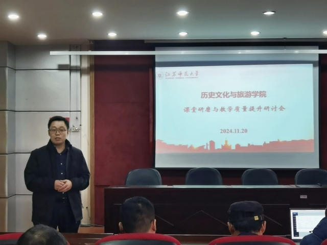 为进一步强化教学比赛在推动教师队伍素质提升中的引领与示范作用,提升教师的教学技能与专业水平,历史文化与旅游学院于11月20日下午举行了课堂研磨与教学质量提升研讨会。研讨会由张红霞副院长主持,刘德州院长、学院全体教学督导及教师代表共同参与。研讨会还特别邀请多年深耕于教师教育一线的薛伟强老师、江苏省师范院校教师智慧教学大赛一等奖获得者丁佳伟老师、校级青年教师评优赛一等奖获得者殷英梅老师进行指导。