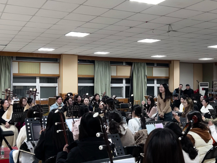2024年11月21日晚上,常州市歌舞剧院民族乐团“心韵”组合一行人在徐静团长的带领下,来到江苏师范大学音乐学院,与学院民族乐团开展了观摩和交流。