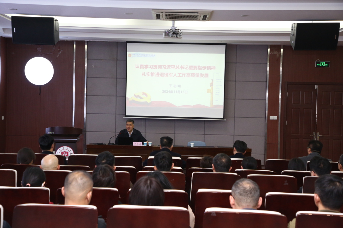 11月13日下午,退役军人事务部办公厅原主任、上海师范大学兼职教授王志明在学校大学生心理健康教育中心报告厅作了题为“认真学习贯彻习近平总书记重要指示精神,扎实推进退役军人工作高质量发展”的学术报告。本次报告会由退役军人学院、退役军人研究院、人文社会科学研究院共同举办。徐州市退役军人事务局领导、机关事业单位干部和我校退役军人研究人员60多人参加了报告会。