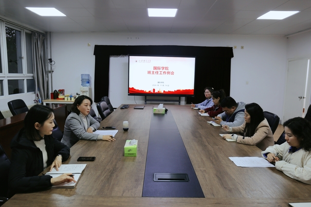 2024年11月19日,国际学院在210会议室召开留学生班主任工作例会,学院党总支书记董海宁、副书记任欢欢,全体留学生班主任参加会议。会议由学院党总支副书记任欢欢主持。