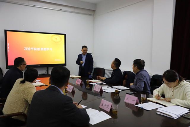 随后,祝天智院长以《习近平法治思想学习》为主题进行了重点发言,祝院长从党的二十大报告切入,结合习近平法治思想的内涵体系,提出了关于依法推动高学院高质量发展的思考。其他中心组成员围绕深入学习习近平法治思想内涵,结合分管工作分别进行了交流发言。