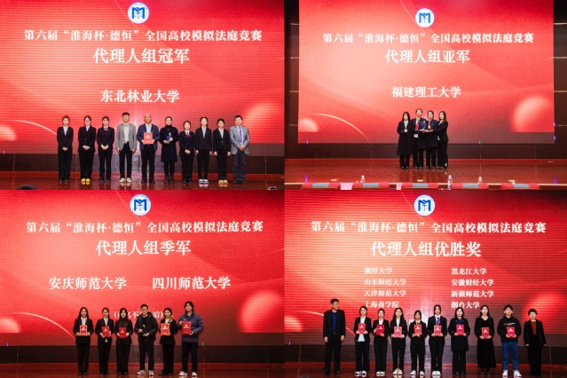 11月16日举行了初赛,23日、24日举行了复赛、四分之一决赛、半决赛和决赛。经过激烈角逐,本次竞赛的获奖名次全部产生。获得代理人组冠军的是东北林业大学,获得代理人组亚军的是福建理工大学,获得代理人组季军的是安庆师范大学与四川师范大学。获得代理人组优秀团队奖的队伍共8支,分别是:湘潭大学、山东财经大学、天津师范大学、上海商学院、黑龙江大学、安徽财经大学、新疆师范大学、烟台大学。获得法官组冠军的是中华女子学院,获得法官组亚军的是中国海洋大学,获得法官组季军的是河北金融学院。获得最佳辩手的是东北林业大学的朱祎琳同学和福建理工大学的陈丽娟同学;获得最佳审判员奖的是中华女子学院的胥成浩同学。此外,128名选手分获“优秀辩手”“优秀审判员”奖。