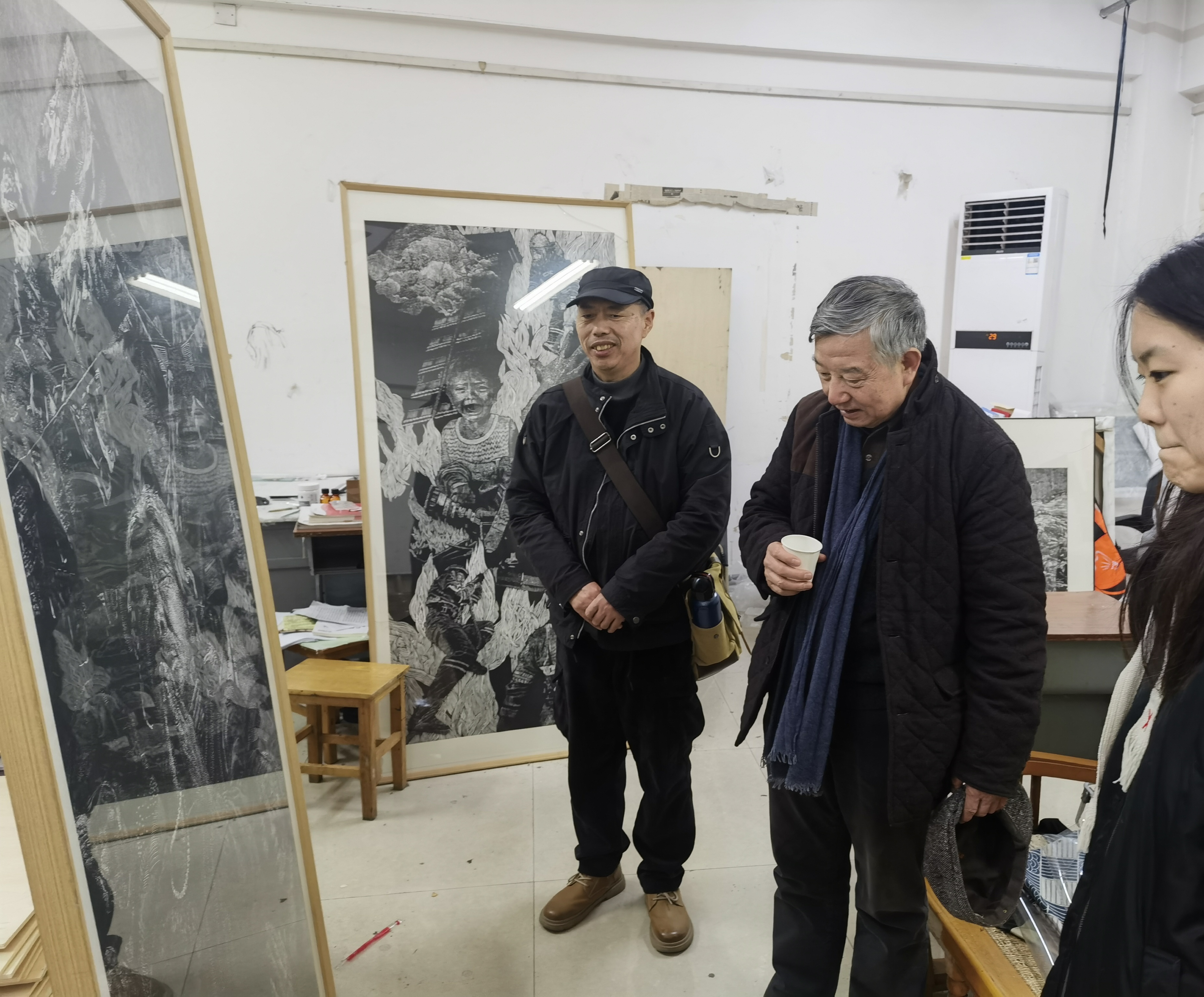 吴长江先生一行参观了部分研究生的作品并作出了高度评价,对学院的人才培养给予了高度认可。随后,吴长江先生一行参观我院版画工作室,结合我院办学特色提出建设性意见,助推专业高质量发展。