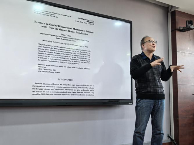 学术报告主讲人张晓贵,博士,教授,他长期从事数学教学社会学的研究,是我国著名的数学教育专家。