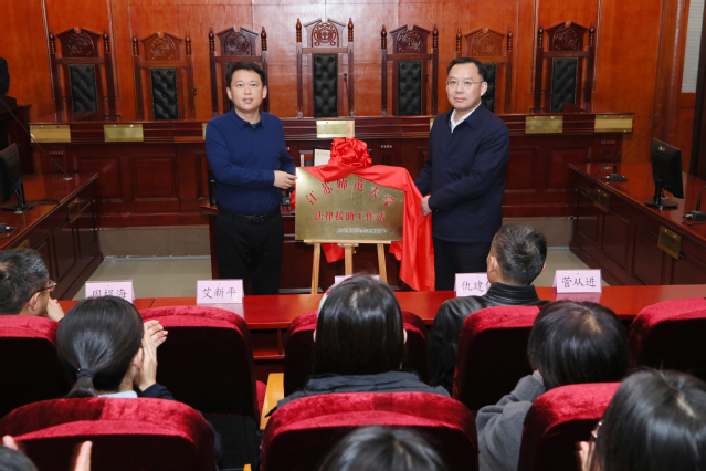 为积极贯彻落实中共中央社会工作部、教育部、司法部《关于加强高校法律援助志愿服务工作的意见》,法学院与铜山区法律援助中心持续加强交流合作,该中心在我校设立了法律援助工作站,校党委常委、纪委书记闾浩和徐州市司法局党组书记、局长艾新平共同为工作站揭牌。