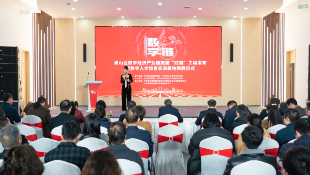 2024年12月4日,泉山区数字经济产业链党建 “红链” 工程发布暨数字人才培育实训基地揭牌仪式在江苏淮海科技城徐州网易联合创新中心圆满落幕,此次活动由泉山区数据局和泉山区数字经济产业链综合党委联合主办。