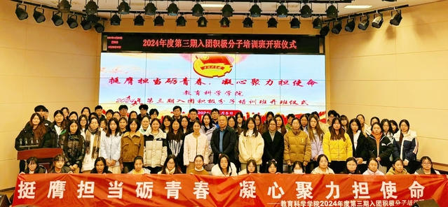 为提升青年学生的政治理论水平和思想觉悟,严格落实团员发展制度,提高团员发展质量,教育科学学院团委于12月5日在学院报告厅举办第三期入团积极分子培训。本期培训以“挺膺担当砺青春,凝心聚力担使命”为主题,参训学员96人。