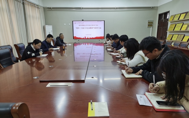 12月13日,商学院开展管理人员“作风能力提升年”活动之“党的二十届三中全会精神”专题学习会,商学院党委书记钱程、党委副书记吴夏蓉和全体科级及以下干部参加会议。