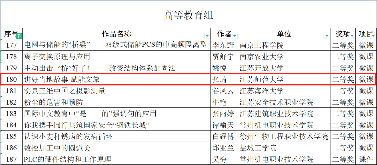 近日,2024年“领航杯”江苏省教师信息素养提升实践活动比赛结果公布,我院张琦老师的微课作品《讲好当地故事 赋能文旅》获得省高等教育组二等奖。
