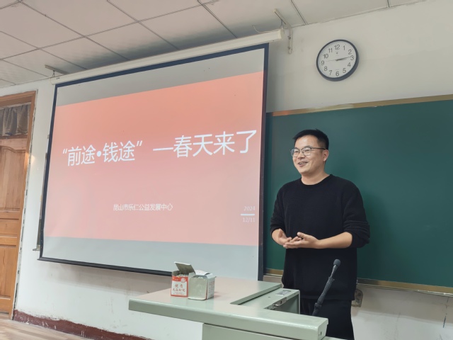 2015届校友,昆山市乐仁公益发展中心党支部书记、事业部主管金松松在分享中向同学们介绍了当下社会工作领域的新态势:项目领域多样化,广泛覆盖从儿童福利到社区发展等多个方面;项目资金来源日益多元化,政府资助与社会各界资助并;职业社会认可度提升,前途广阔。