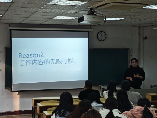 活动伊始。李同老师首先对同学们的到来表示热烈欢迎,依次介绍各位校友的优秀事迹,鼓励同学们更好地规划大学生活,明确未来的职业发展方向。