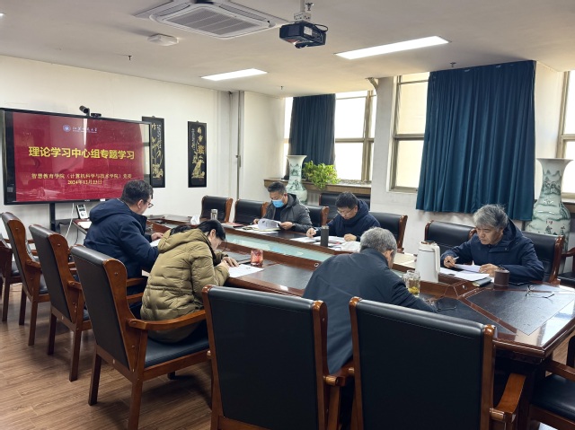 2024年12月23日,智慧教育学院党委理论学习中心组在静远楼908会议室召开十二月份专题学习,深入学习习近平总书记关于推动高质量发展的重要论述。会议由学院党委书记周显洋主持,副院长祝义领学,学院领导班子成员参加。
