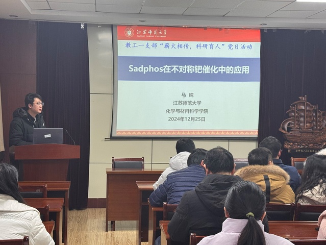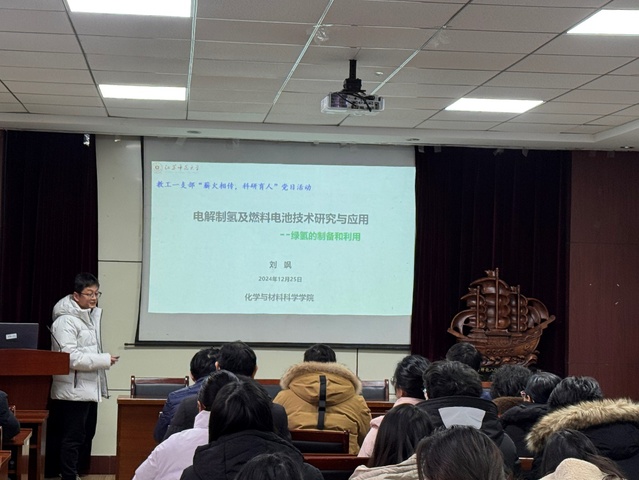 本次活动由支部书记姜波教授主持,支部党员刘飒副教授和马纯副教授分别做“电解制氢及燃料电池技术研究与应用-绿氢的制备和利用”和“Sadphos在不对称钯催化中的应用”主题报告,详细讲述了各自研究背影及研究意义,阐述在各自的研究领域中取得的重要研究进展,分享各自的科研心路。两位老师的精彩报告引起了学生们的阵阵掌声,学生们深感受益匪浅。