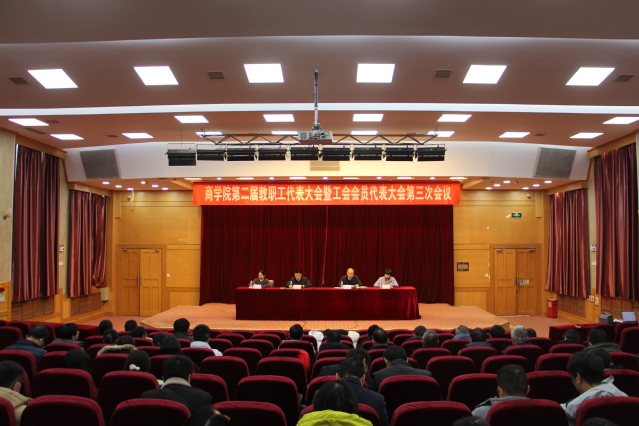 12月25日,商学院第二届教职工代表暨工会会员代表大会第三次会议在敬文报告厅召开,学院党委和行政领导班子成员,全体正式代表和列席代表参加会议。大会由院党委书记钱程主持。
