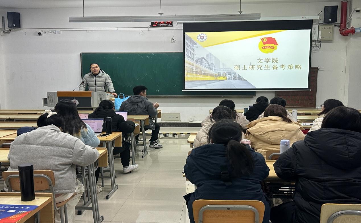 为引导2022级本科生明确考研方向,科学选择考研院校和专业,进一步激发其考研的自信心与动力,12月26日晚,文学院在西教14#-北115召开考研动员会,22级有考研意向的近100位学生参会。动员会由辅导员李尧天主持。