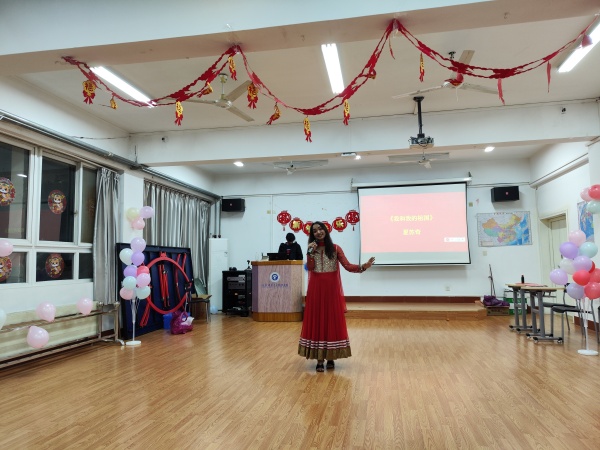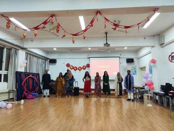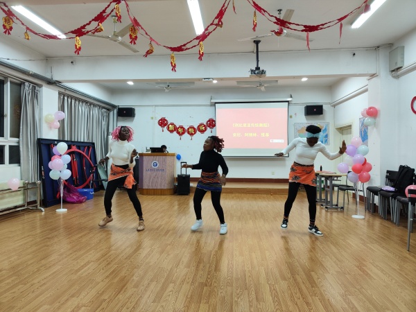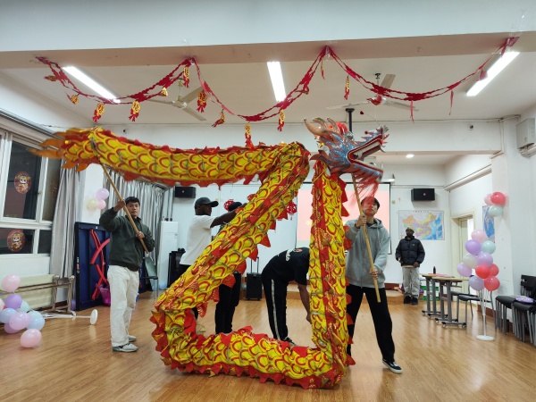 联欢会在热烈的气氛中拉开帷幕。留学生们带有异域特色的舞蹈表演赢得了在场师生的阵阵掌声;中文歌曲《我和我的祖国》《月亮代表我的心》表达了他们对中国的喜爱;狮子、立夫等同学的舞龙表演让大家连连惊叹;国际学生走秀环节中,各国学生身着传统服饰,展示本国独特文化,让人目不暇接。期间,同学们还进行了“你演我猜”、“击鼓传花”等互动游戏和趣味比赛。活动现场洋溢着欢乐祥和的氛围,让在场的每一个人都感受到了节日的喜庆。