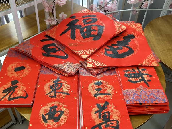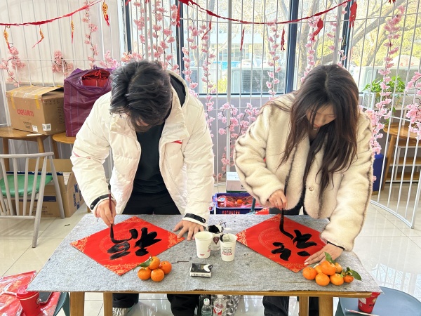 活动现场,棋牌比赛区域的选手们彼此配合默契、斗智斗勇,充分施展了高超的牌技,现场氛围热闹而和谐,欢声笑语不绝于耳,大家在比赛中相互了解。包饺子的老师们捋起衣袖,热情洋溢地开始动手包饺子,在一片欢声笑语之中,一个个形状各异的饺子渐次成形,有的仿若精巧的小船,在岁月之河中摇曳;有的恰似祥瑞的元宝,寓意着新年的吉祥与幸福。歌唱爱好者以独唱、对唱、合唱等形式,为大家献上了一首首优美动听的歌曲,赢得了一阵阵热烈的掌声。学院还特别邀请书法专业的学生为大家现场书写“私人订制”的春联和福字,希望新的一年里大家都能收获满满的好运与祝福。