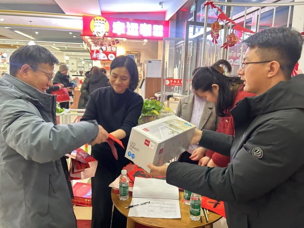 活动尾声,举行了抽奖活动,学院为参与活动的教职工准备了大米、吹风机、保温杯、浴巾等奖品,每一份奖品都表达和寄托了节日的美好祝福。最后全体教职工合影留念,将这一美好瞬间永远定格。云程发轫赴山海,再踏层峰辟新天。在新的一年里,商学院将继续秉持初心,携手共进,持续加强“幸福商院”建设,共同书写学院高质量发展的新篇章!